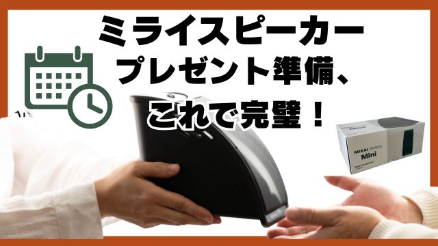 ミライスピーカー ミライスピーカーをプレゼント!ラッピング・配送日時・送付先まとめ ミライスピーカーを親にプレゼントするにあたり、ラッピング対応や配送日時など、気になる点をまとめて確認しました。調べてわかったポイントは次のとおりです。ギフト包装の対応はないが、箱がかっこいい(そのままで十分!)配送日の日時指定ができる送付先... 2025.11.14 ミライスピーカー