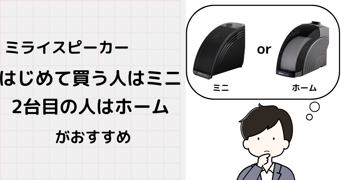 「ミライスピーカーのミニとホームって何が違うんだろう?」「どっちを買うのがいいのかな?」と気になって調べてみました。